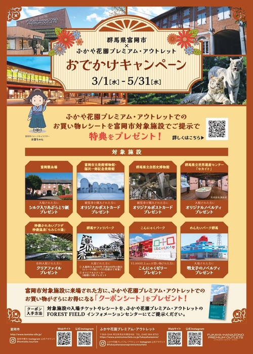 ぜひこの機会に富岡市・甘楽町とふかや花園プレミアム・アウトレットへお出かけください。