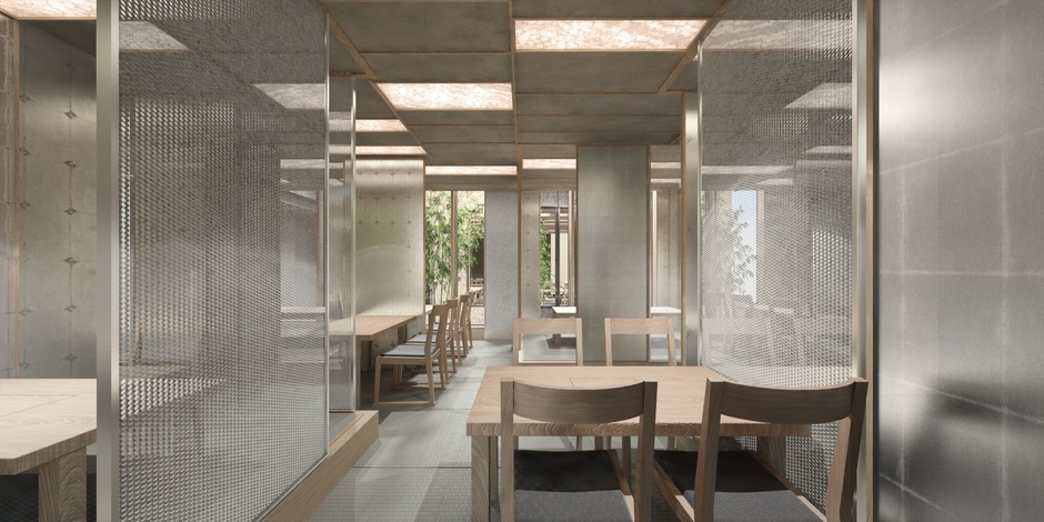 数々の受賞実績をお持ちの千葉 学先生(千葉学建築計画事務所)による建築設計。銀箔と白木で統一されたスタイリッシュな和空間には、1階に半個室、2階に完全個室を配し、竹を植えた風流な2つの中庭を望みながら、新しさの中にも伝統ある京都の風情を感じおくつろぎ頂けます。