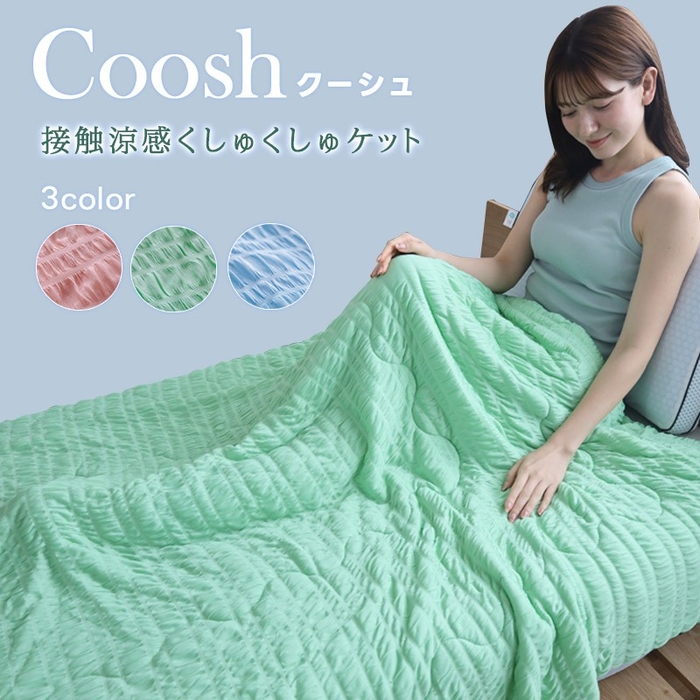 涼感生地と立体的なクシュクシュ加工で、夏の夜もべたつきにくい。ヒンヤリさらさら快適なクールケット。