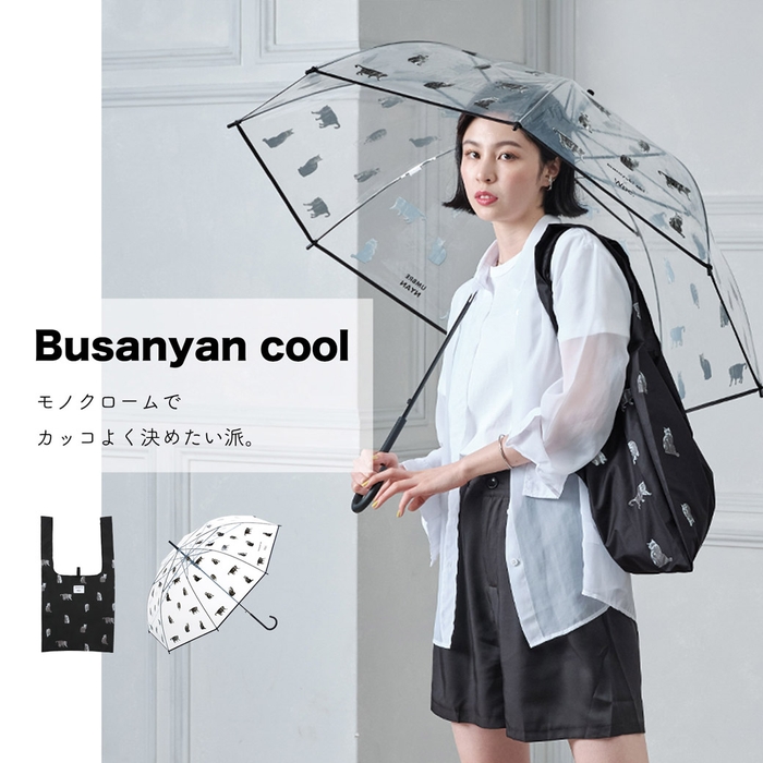 傘とエコバッグのデザインに登場するのは、昨年7月にSNSで実施した人気投票で選ばれた猫たち。「ぶさにゃん先輩。」「イケメン猫」「チャトラ猫」の3種類の展開です。