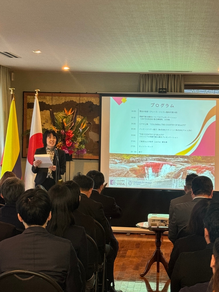 3月22日観光業界の方を対象に、ProColombiaによるコロンビア観光についてのイベントが、国連世界観光機構(UNTourism)駐日事務所のご協力のもと、コロンビア大使館にて開催されました。その景観の美しさや生態系の豊かさから「美を生きる国」とも呼ばれるコロンビアですが、近年では特にサステナブル・ツーリズムに適した国としても注目されています。本イベントでは、コロンビアの魅力的な観光スポットを知るとともに、コロンビアで実施されている持続可能性への取り組みについて理解を深めることができました。