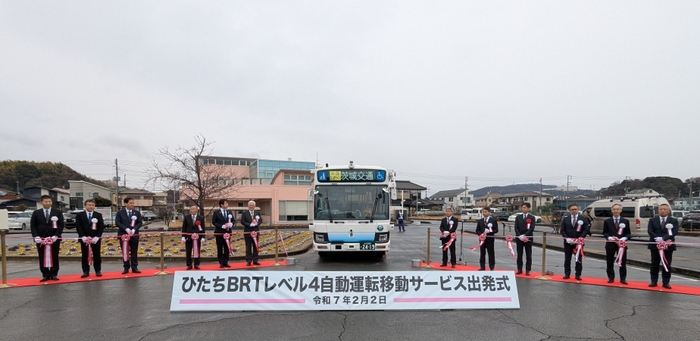 茨城県日立市(市長 小川春樹)では、2021年度から、経済産業省と国土交通省の実証事業の一環として、ひたちBRT(※1)専用道区間内で自動運転バスの実証実験が行われてきましたが、このたび、自動運転レベル4(※2)の営業運行の許可を受け、2025年2月3日から、一般の方が自動運転バスに乗車できるようになりました。路線バスで多く使用される中型バス車両では、国内初の「レベル4」での営業運行となります。日立市での自動運転バス(※3)の実用化により、政府が目標に掲げる自動運転移動サービスの全国展開に向けた大きな一歩が踏み出されます。