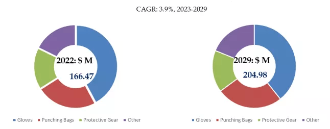 ボクシング用品、世界市場規模、製品セグメント別構成比、グローブが市場を席巻