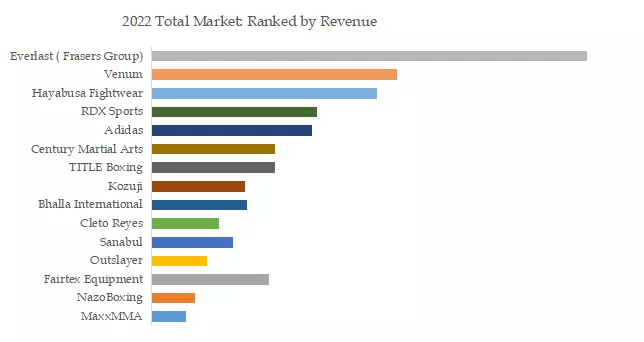 2022年には、世界の上位5社が売上高で52.4%の市場シェアを占める。上図は、ボクシング用品の売上高でランク付けされた主要プレイヤーを示している。