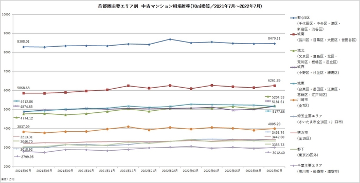 ■全国主要エリア 中古マンション相場推移(2021年7月~2022年7月)