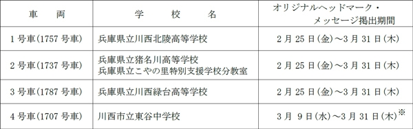 能勢電鉄では、昨年に引き続き、今年度末に卒業を予定されている沿線の学校の生徒様へ向け卒業列車“祝電(しゅくでん)”を運行します。