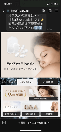 ご自身にぴったりフィットする耳栓をご提案する「LINEでEarZzz診断」を