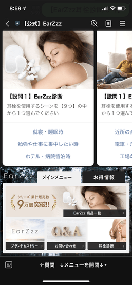 などのお悩みを解消してくれるのが、「LINEでEarZzz診断」です。