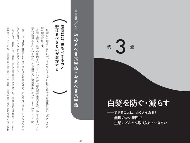 ・白髪対策に特化し、直接髪や頭皮に働きかけるといった正攻法を1冊にした本は、今までありませんでした。