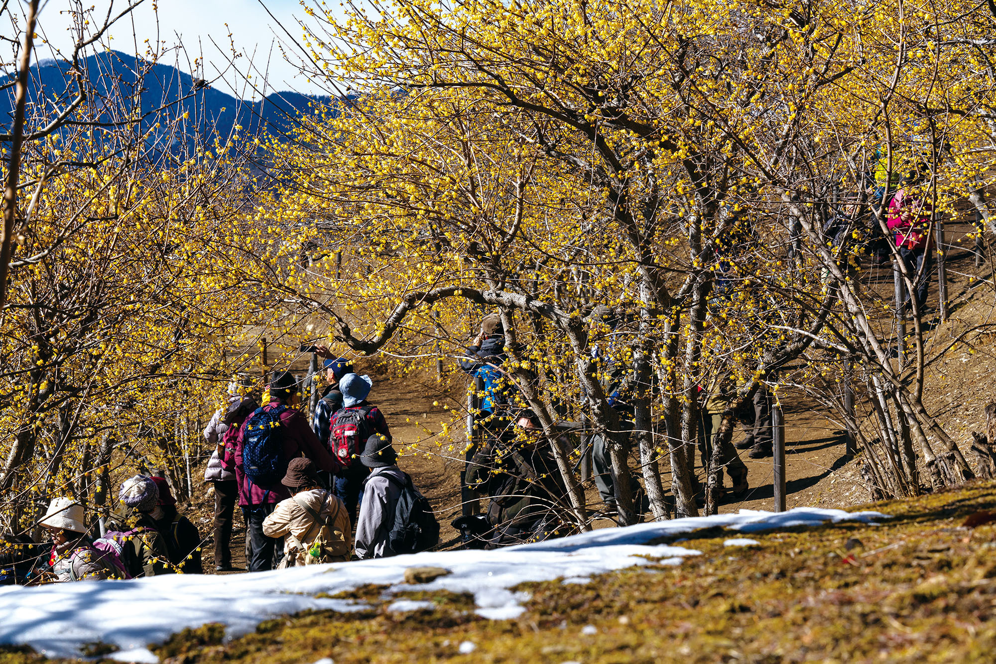 標高497メートルの宝登山山頂一帯(約15,000平方メートル)に約3,000本のロウバイが広がり、毎年訪れる人々を魅了します。