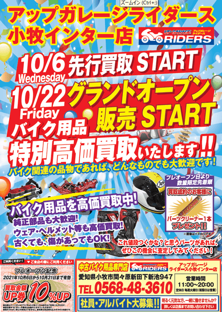 「アップガレージ ライダース小牧インター店」 オープンのお知らせ