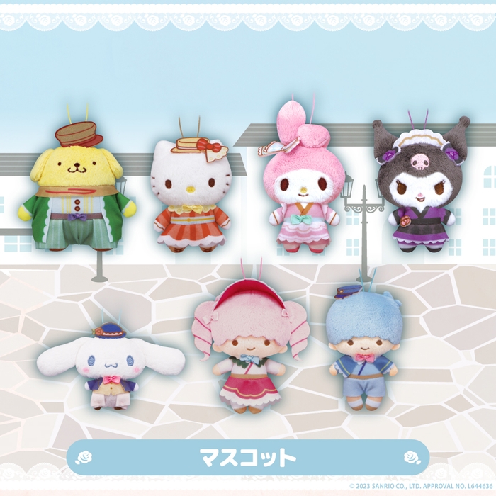 カバンなどに付けるのにぴったりな大きさのオリジナルデザイン衣装に身を包んだマスコットぬいぐるみがラインナップ。それぞれのキャラクターにあわせたリボンや帽子がキュートです。サイズ:約11cm