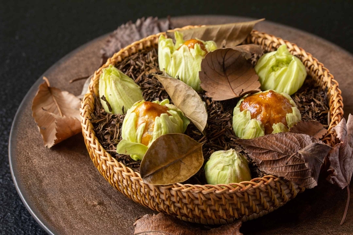 コロナの影響で、これまで以上に免疫力に対する意識が高まっています。(*2)そこで、免疫力を高めると言われる発酵食品を使用した料理を食べて、身体の内側から元気になっていただきたいと考え、昨年本コースを開発しました。星のや東京料理長・浜田統之(はまだのりゆき)(以下、浜田)がフレンチの世界で培ってきた技術と感性を活かし、古来から親しまれてきた発酵食品と、山菜や魚など日本の豊かな風土が生み出す食材を合わせた料理を用意します。