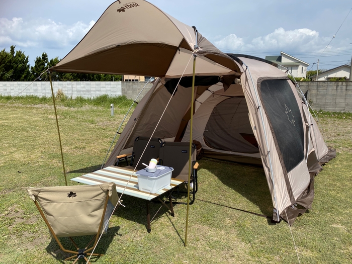 テントサイトにはテントの他テーブルや椅子、無煙焼肉ロースター、食器や調理器具など一通りのものが揃っております。