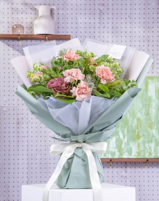 プチコノカ阪急三番街店において、阪急三番街地下2階の『上高地あずさ珈琲阪急三番街店』のレシートをお持ちいただいた方に、長野県JAから出荷された『カーネーション』1本を先着20名様限定でプレゼント。又、期間中『上高地あずさ珈琲阪急三番街店』レシートお持ちの方限定で、カーネーションの花束4,400円(税込)を10%割引の3,960円(税込)でご購入頂けます。