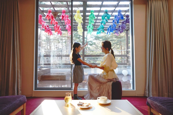 今年は、ピーマン通りにあるふれふれ坊主が客室にも登場。172室ある客室の中の「レジデンスメゾネット」のテラスに、ふれふれ坊主を飾ります。プライベートな空間でカラフルなふれふれ坊主を眺められ、雨の日も明るい気分になれます。