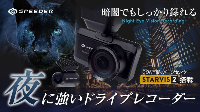 本製品はフロントカメラにSONYの最新型イメージセンサーである「STARVIS2」を搭載!従来のSTARVISよりも低照度性能の向上と、ダイナミックレンジの拡大により、街灯の少ない郊外の道路や、急激に明るさが変わるトンネルの出口などでも鮮明な映像を記録することができます。
