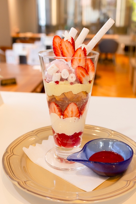新商品②旬のいちごを主役にした、見た目も華やかな「いちごパフェ」。