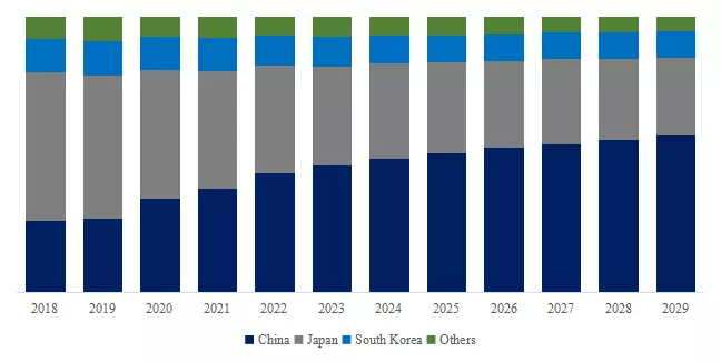 2023年までに、中国の生産額シェアは45%を超えるだろう。今後数年間は、中国が主要な市場シェアを占めるだろう。