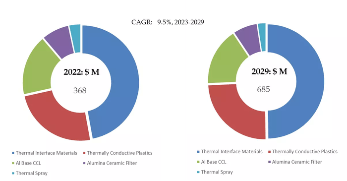 製品の用途別では、熱インターフェース材料が最大の用途であり、49%のシェアを占めている。