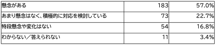 時価総額の区分別でみたところ、1,000億円以上の企業では「懸念がある」よりも「懸念がない」のほうが上回る結果となった。