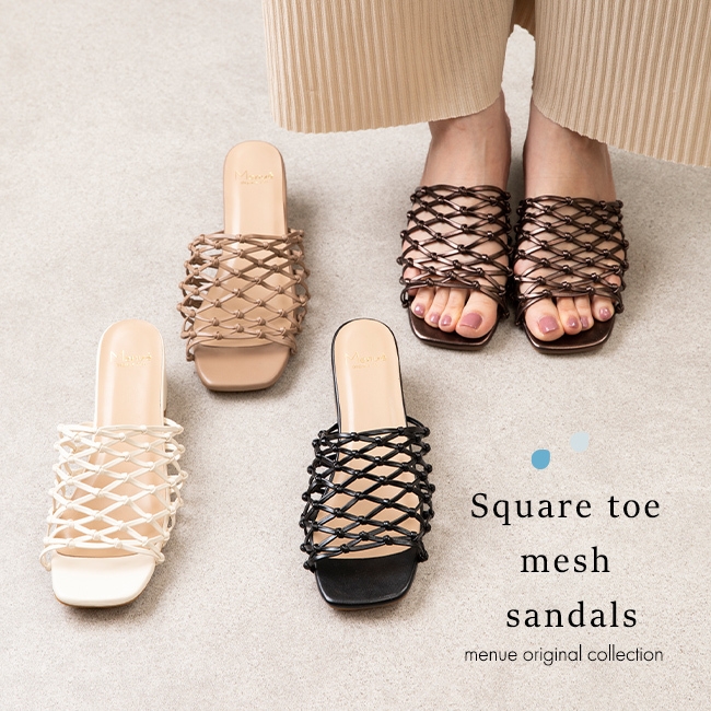 【商品情報】 スクエアトゥ編メッシュサンダル