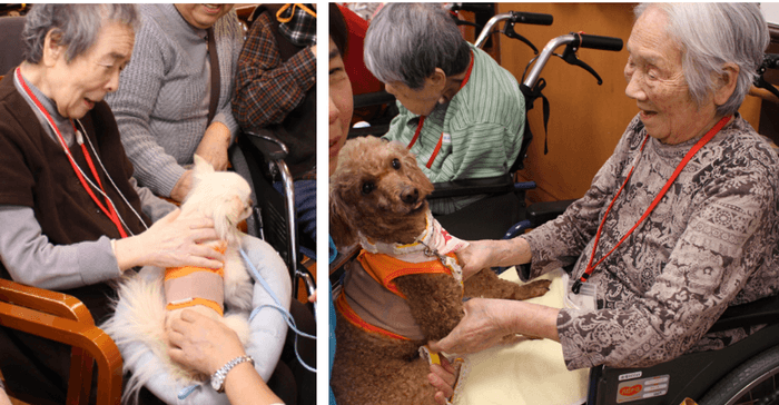 そこで、高齢者施設に入居している高齢者とセラピー犬の触れ合いが、人と犬の双方に対して、どのような効果をもたらしているのかを研究しました。