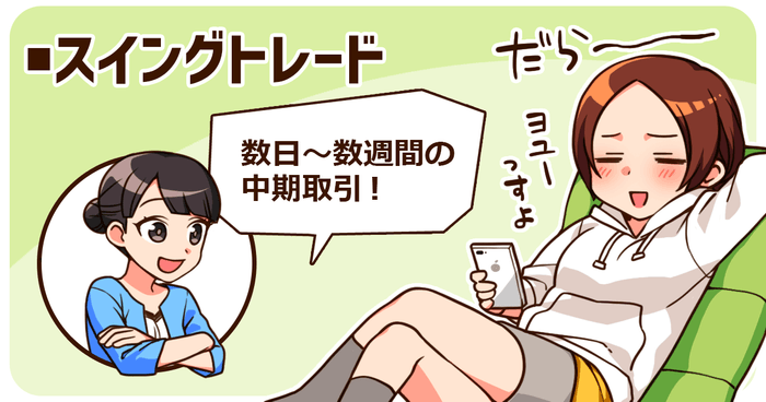 デイトレードよりも間隔が長い1日~数週間単位で利益が出るタイミングを待ちながら取引をするスタイルをスイングトレードと言います。