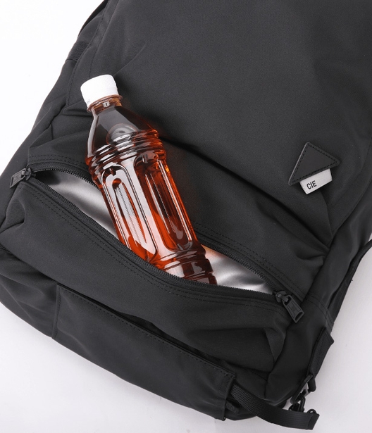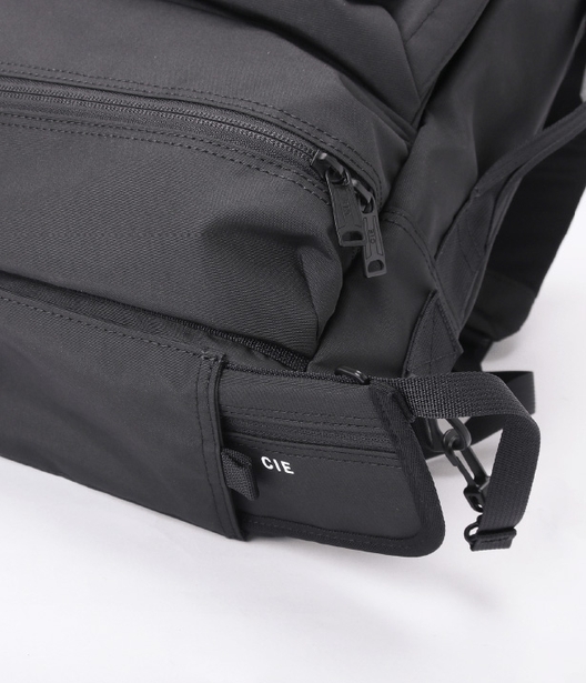 ノートPCコンパートメントや小物ポケットを着脱式パネルとして装備。効率良く収納できるポケットが充実(内装に小物ポケット×3、側面にペットボトルサイズ収納フリーポケット×2、背面にファスナー付隠しポケット、ファスナーポケット×2)。背面のストラップからキャリーバーに固定可能。機内持ち込みサイズ。自立できる点もポイント。