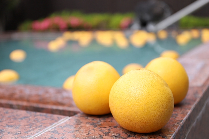 「富士眺望の湯ゆらり」には、世界文化遺産・富士山を眺めながらお風呂に浸かることができる露天風呂、「パノラマ風呂」があります。その「パノラマ風呂」に季節感のある物を浮かべて「変わり湯」を楽しんでいただくイベントが「お風呂の日」です。今月9月26日の「変わり湯」は、女性に嬉しい美容効果が期待できる「グレープフルーツの湯」です。