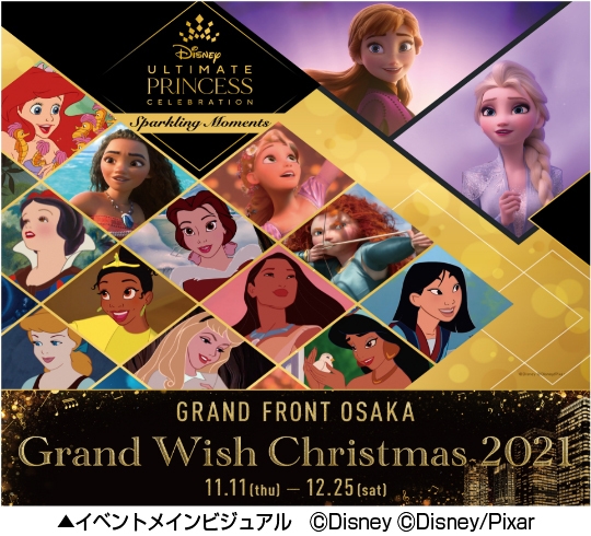 グランフロント大阪(大阪市北区大深町)では、ディズニーが“勇気と優しさ”をテーマに、グローバルで展開するディズニープリンセスの祭典「アルティメット・プリンセス・セレブレーション」とタイアップしたクリスマスイベント『Grand Wish Christmas 2021 | Disney Ultimate Princess Celebration~Sparkling Moments~』 (グランウィッシュクリスマス2021 ディズニー・アルティメット・プリンセス・セレブレーション~スパークリングモーメンツ~)を2021年11月11日(木)~12月25日(土)まで開催します。