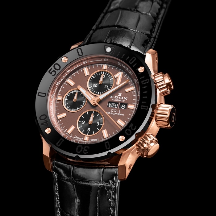 最高速度が時速200kmを超え海のF1とも称されるパワーボートレースの、ダイナミックかつラグジュアリーな世界観を投影した、エドックスのフラッグシップコレクションです。厚さ3.5mm以上の重厚なセラミックベゼルや300~1000m防水を標準スペックとして備え、素材や仕上げへの一切の妥協を許さず審美性を追求することで、タフネスとエレガンスを両立しています。