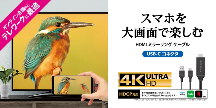 シリーズ累計出荷数が8万個超えの大人気商品 USB-Cコネクタ HDMIミラーリングケーブル2m&3mを新発売