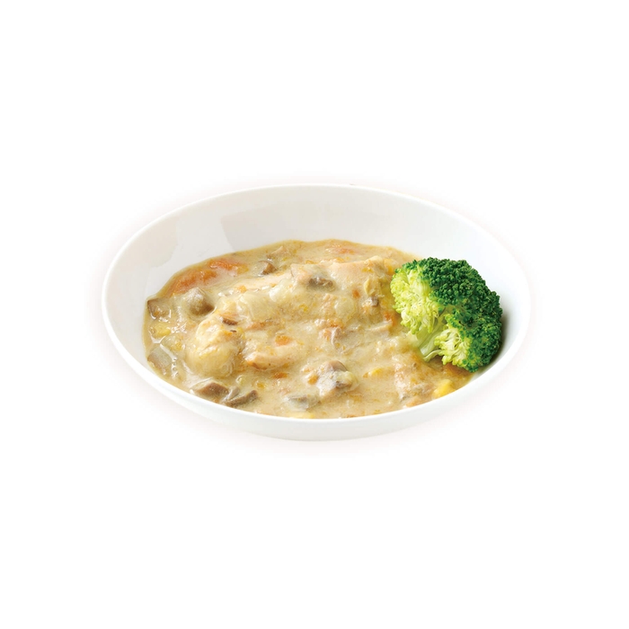 鶏肉と野菜を和風の豆乳クリームソースでフレンチ仕立てのフリカッセ(クリーム煮)風に仕上げました。あっさりしながらもコクがあるソースは、ごはんとの相性◎