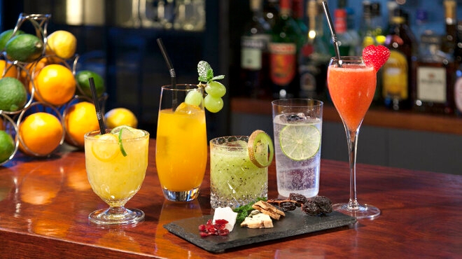 洋梨のフレーバー入りウォッカと皮ごとすり潰した金柑を使ったカクテルや、華やかなバラのフレーバーを加えたイチゴとシャンパンのカクテルなど、その時期ならではのフレッシュな味わいが楽しめますよ。