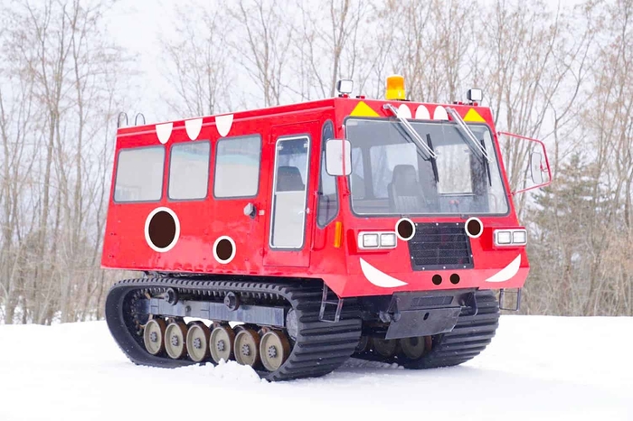 でっこら赤べこ雪広場では、赤べこの形をした「赤べこ雪上車」を運行します。雪上車はホテル周辺の雪原を周遊します。外見が赤べこの形をしていることはもちろん、車内も、赤べこのクッションなどがおかれたべこジェニックな雪上車です。中では、地元の牛乳屋さんである会津中央乳業の「べこの乳」を提供します。