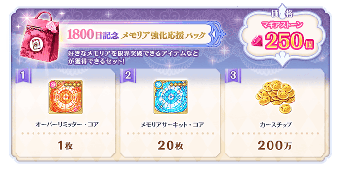 通常のデイリーミッションに加えてマギアストーンや「メモリアサーキット・コア」等を獲得できる期間限定デイリーミッションを追加いたします。