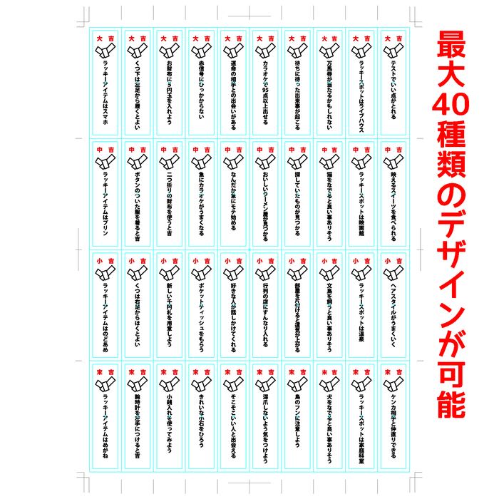 最大40パターンのおみくじをお好きなデザインで作成可能