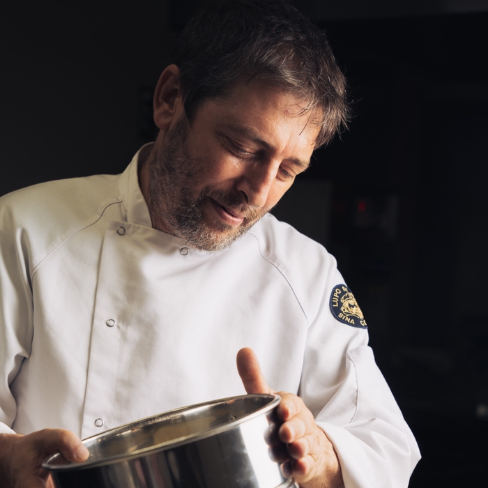 1969年イタリア生まれ。イタリアで代々続く郷土料理レストランの家庭で育つ。ミラノ、ローマ、リミニトスカーナで修行後、1994年来日。