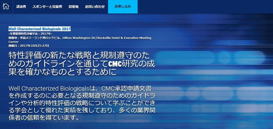 国際学会 「生物製剤特性評価学会 2017年-」(IBC Life Sciences 主催)の参加お申込み受付開始