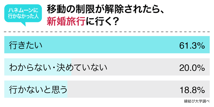 移動の制限が解除されたら新婚旅行に行きたいと考えている人の割合など、新婚カップルの今後の動向をアンケートから読み解きます。