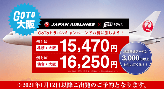 【GoToトラベル】日本航空で行く大阪!お得な航空券宿泊パック