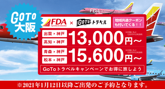 【GoToトラベル】 フジドリームエアーで行く大阪!お得な航空券宿泊パック