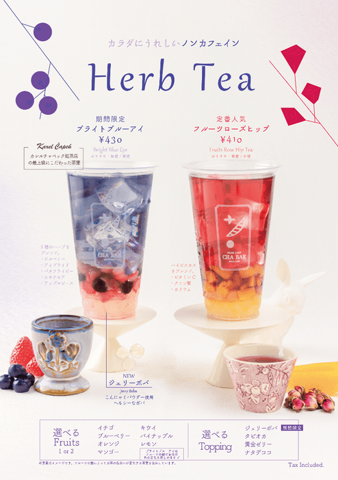 お茶とタピオカの専門店「パールレディ茶BAR」の新作はノンカフェインのハーブティーが登場!