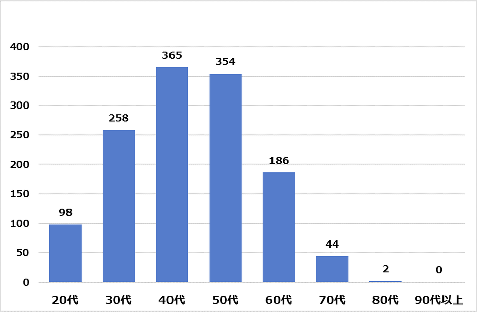 ▼年代別ED患者数(イースト駅前クリニック新橋院の患者数年代内訳)