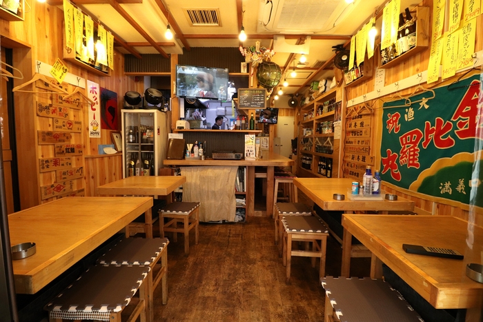 素朴な木の香りが漂う店内は、漁港酒場を再現した内装になっています。
