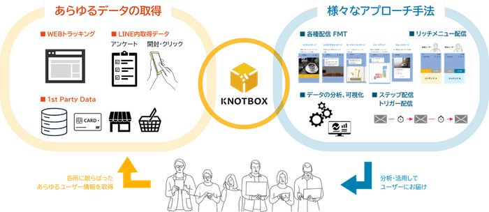 「KNOTBOX」は、LINE公式アカウントに関するユーザー情報の取得・分析・可視化を行う、CCI独自のLINE APIツールです。
