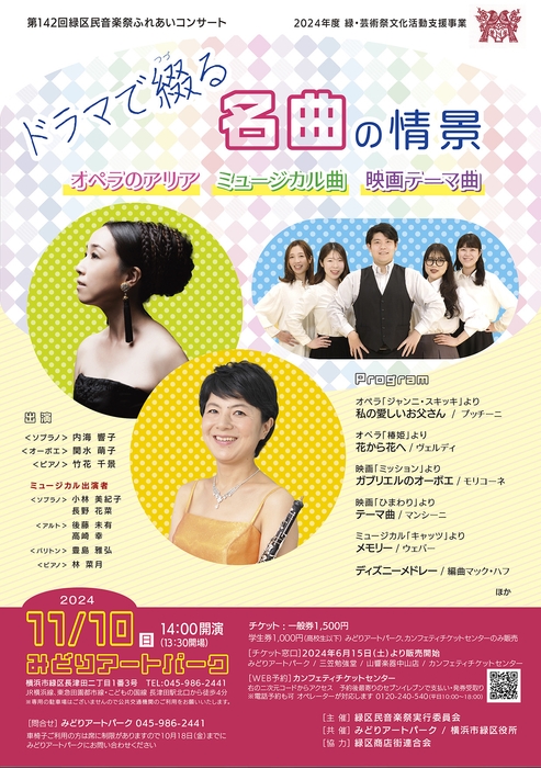 第142回緑区民音楽祭 ふれあいコンサート「ドラマで綴る名曲の情景」開催決定 チケット発売開始