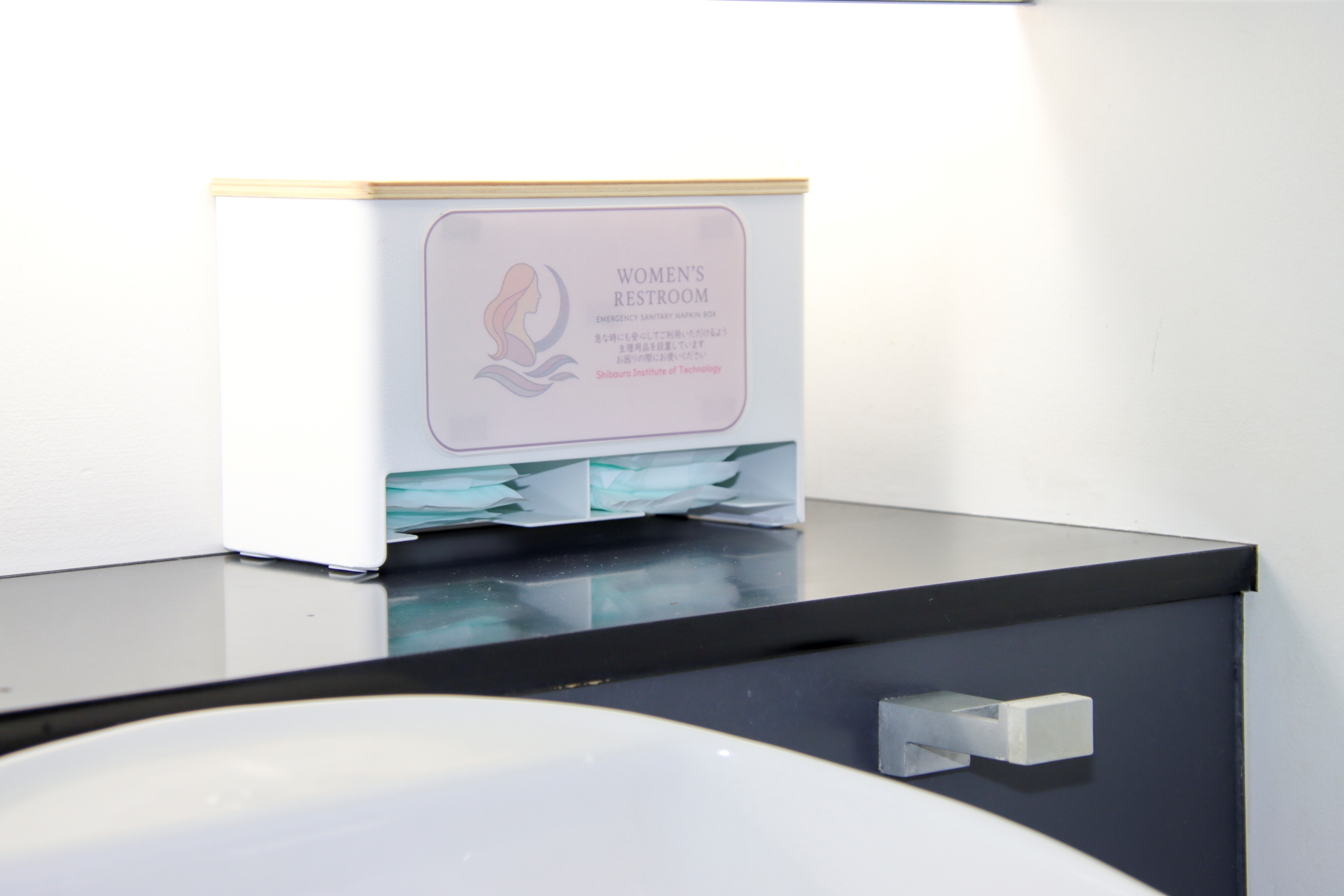 ●大学内の女子トイレに生理用ナプキンを設置し、無償提供を開始
