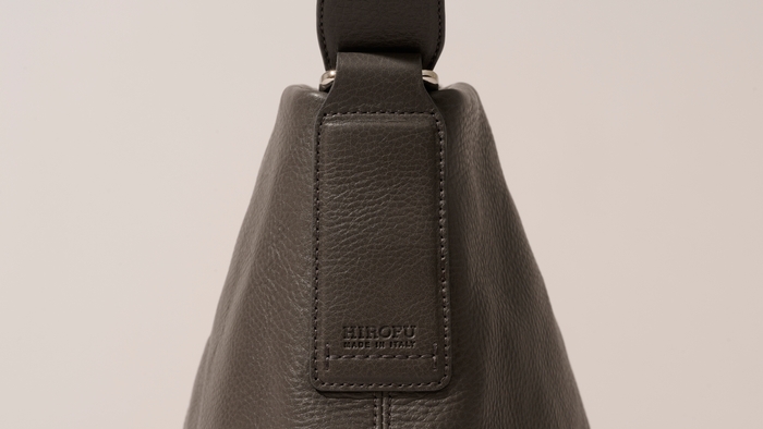 「HIROFU MADE IN ITALY」の型押しロゴも控えめに主張します。